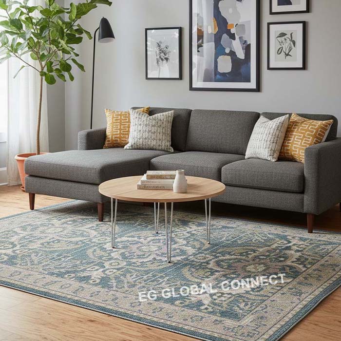 Traditional Viscose-Cotton Blend Rug with Classic Oriental Motifs